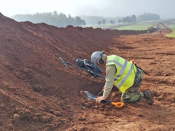 "Na stavbě D11 1108 Jaroměř - Trutnov po problémech ve výběrovém řízení naplno běží archeologické práce. Mimo jiné se našel hromadný hrob vojáků z prusko-rakouské bitvy u Žďáru roku 1745, což je první svého druhu z té doby v Česku," uvedl šéf ŘSD Radek Mátl. V trase jsou i četné nálezy z pozdější bitvy v roce 1866.