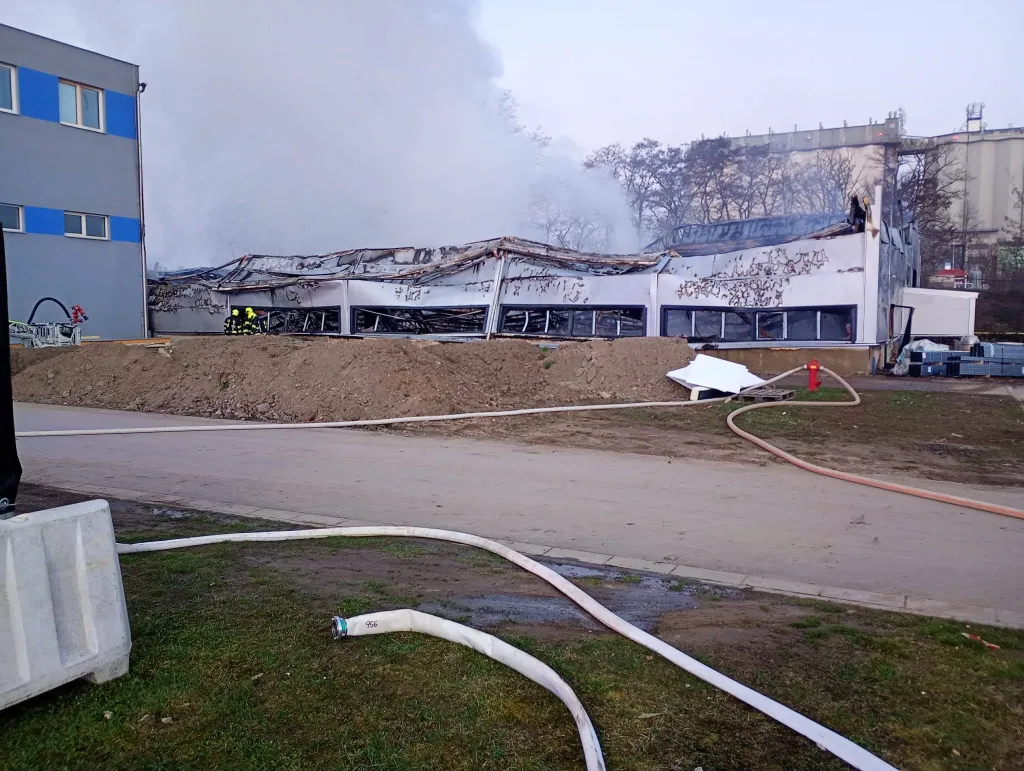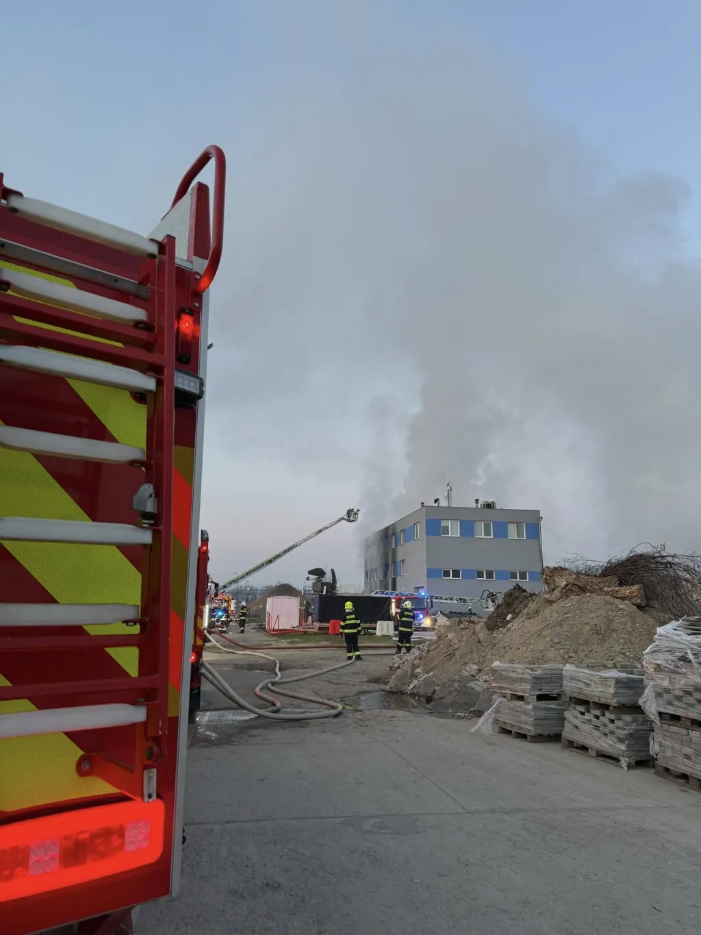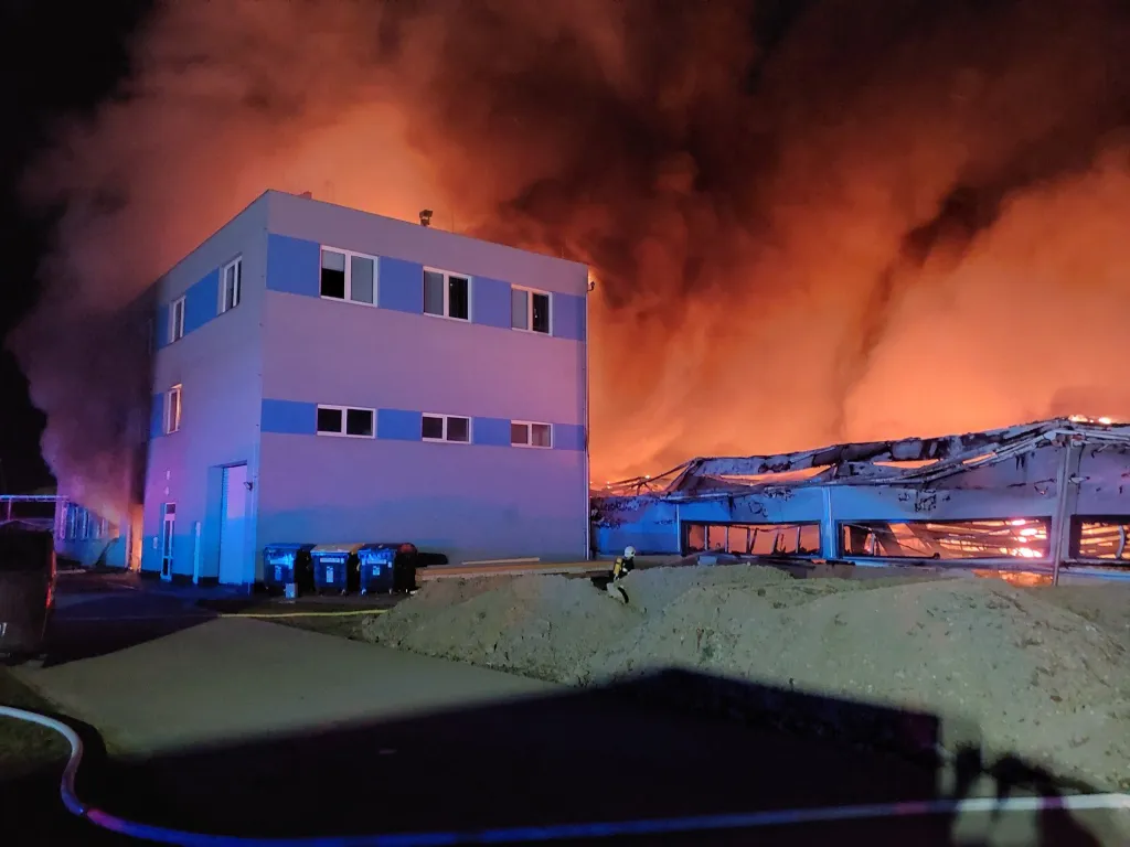 Ranní požár zničil skladovací halu v Pardubicích, s plameny bojovalo deset jednotek hasičů