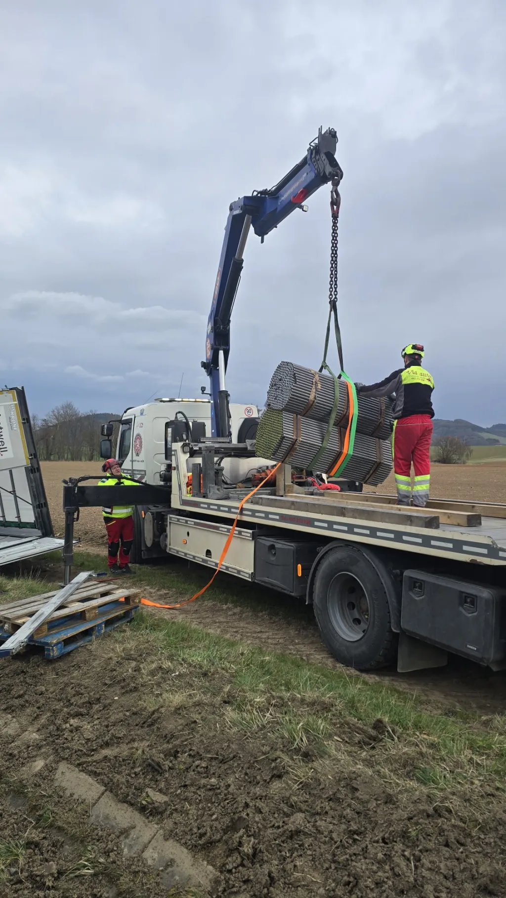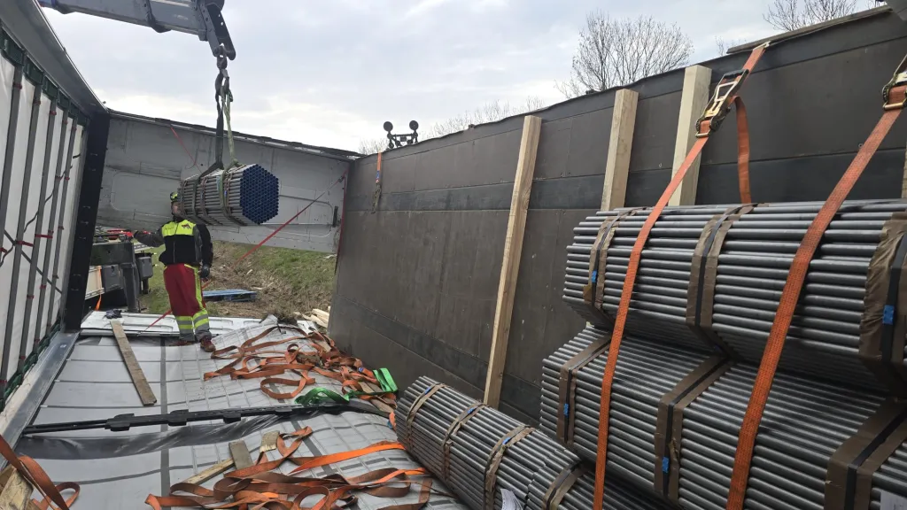 Proces překládky byl časově náročný. Situaci komplikoval fakt, že ocelové pásky držící jednotlivé balíky kulatin pohromadě byly poškozené. Pracovníci tak museli část nákladu přerovnávat a zajišťovat ručně, aby mohl být bezpečně přemístěn na náhradní vozidlo.