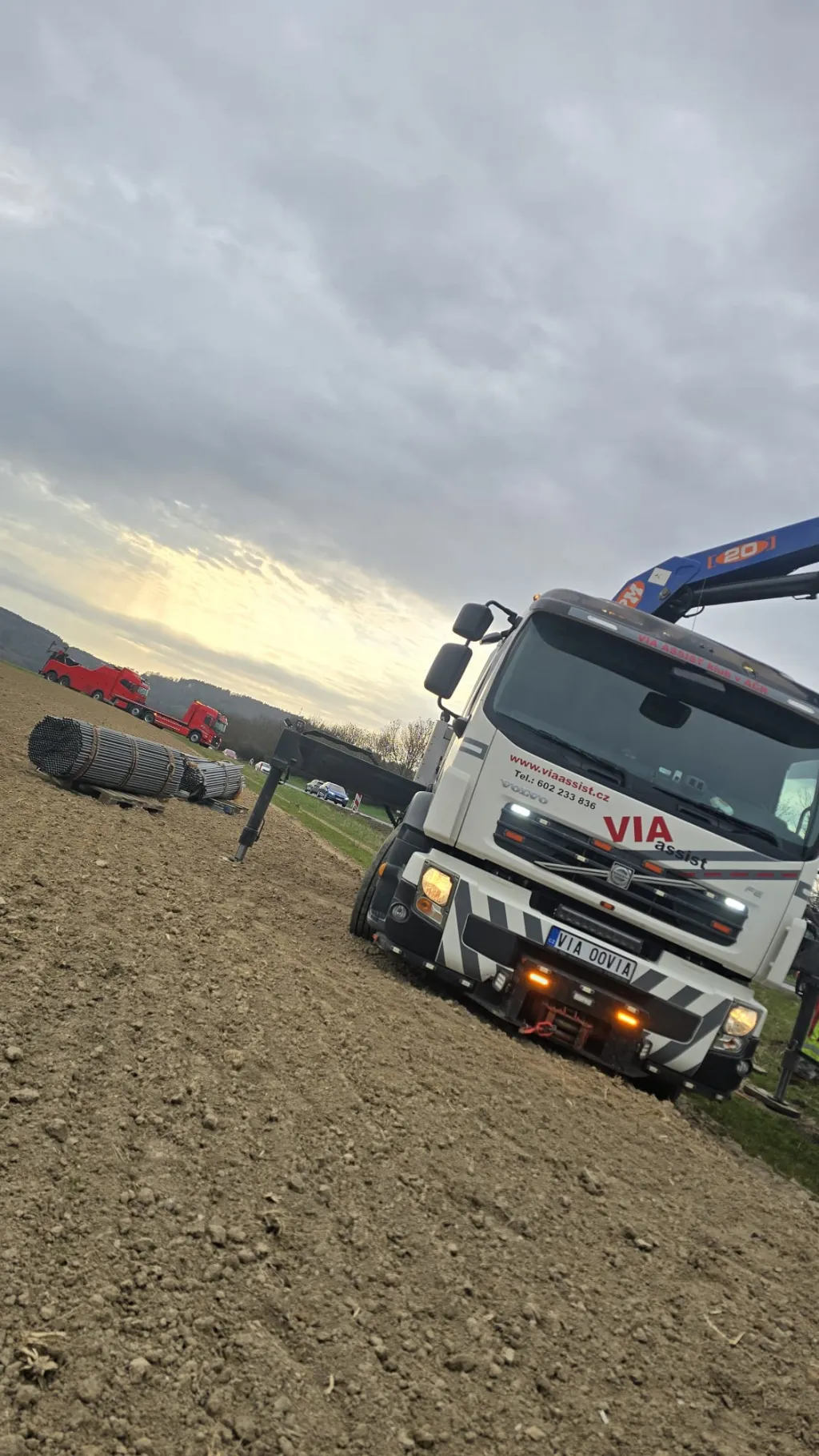 Klíčovým úkolem odtahové služby Via Assist a přivolané náhradní soupravy byla překládka materiálu. Vzhledem k vysoké intenzitě dopravy na silnici I/35 bylo rozhodnuto provést překládku mimo těleso vozovky, ze sousedního pole. Práce započaly kolem 14:00 hodin za využití těžkého odtahového speciálu vybaveného hydraulickou rukou.