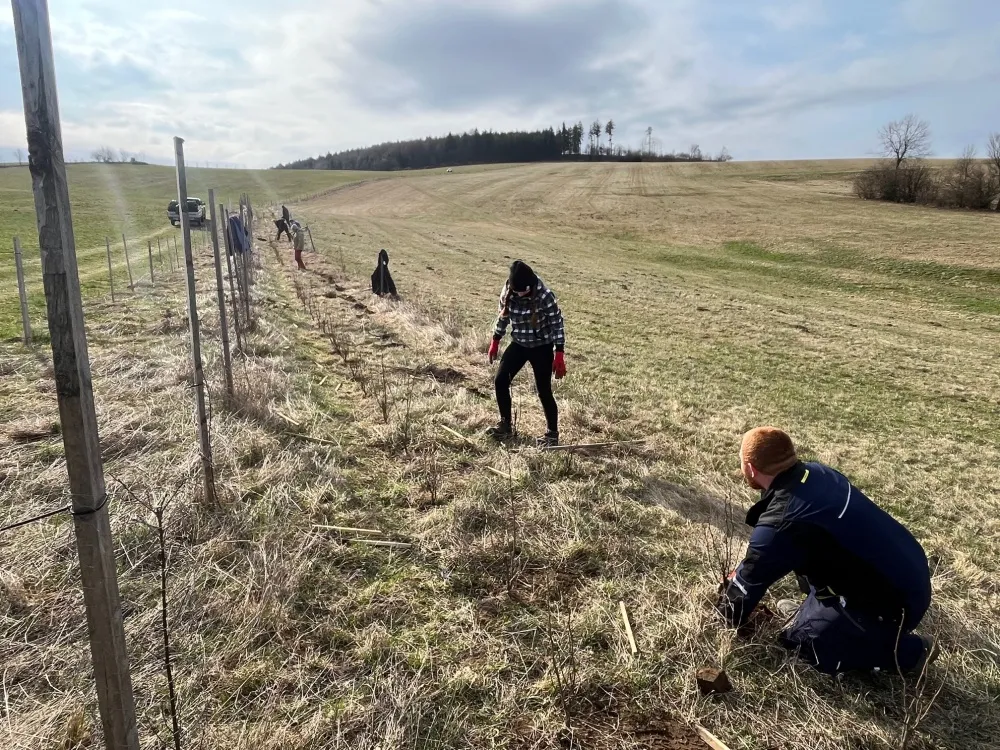 Myslivecký spolek Horní Heřmanice zahajuje výsadbu plodonosných keřů pro nový větrolam v krajině