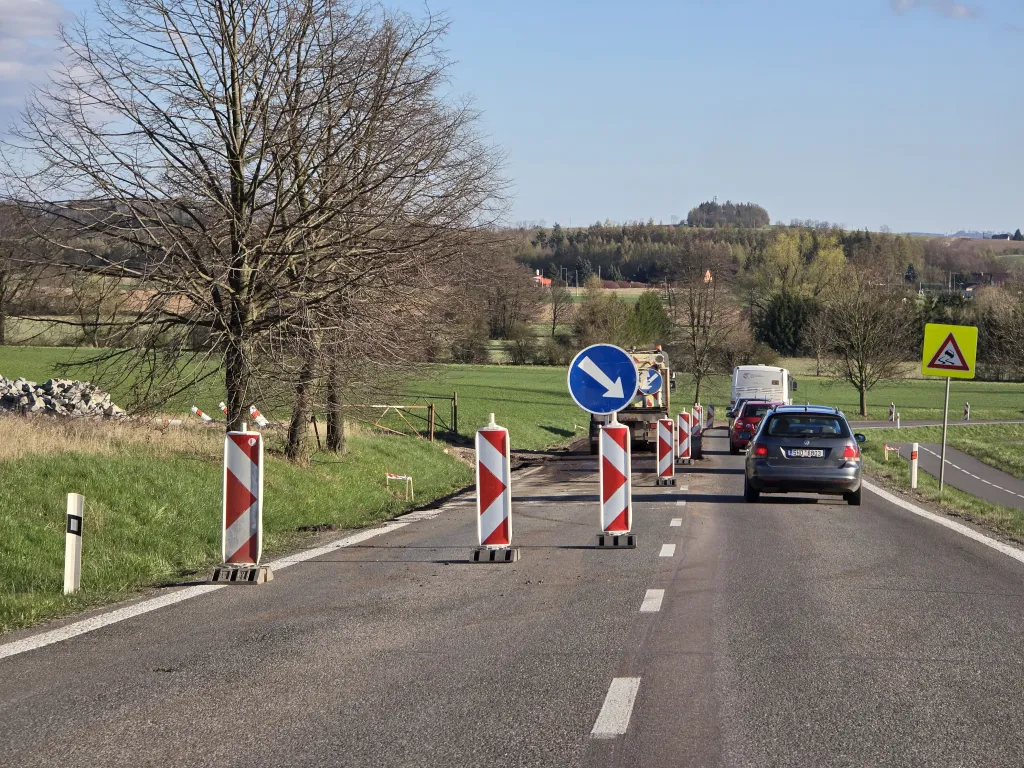 Na silnici I/14 mezi Bílým Újezdem a Ještěticemi začala oprava vozovky, provoz je řízen kyvadlově