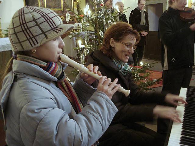 17. prosince od 15 hodin se tu konal vánoční koncert, přijeli muzikanti a zpěváci z Rychnova nad Kněžnou, aby přítomné naladili vánočními tóny a přiblížili ještě více jímavou atmosféru adventu. Koncert zahájila Corelliho menuetem Hanička Vašková na sopránovou flétnu, pak mj. zahrálo houslové trio Kateřina a Lucie Hubálkovy a Šimon Štefanides ze smyčcového souboru Orecchie grandi rychnovské ZUŠ, který vede od roku 2001 Jana Formanová, Fliesovu Vánoční ukolébavku a Pachebelův Kánon a gigue. A právě tady v šachovském kostelíku Nejsvětější Trojice se posluchači - a že jich bylo! - dozvěděli, že Orecchie grandi odjíždí příští rok do Vatikánu a bude hrát papežovi. Že následoval potlesk, nechť je zaznamenáno aspoň tady.