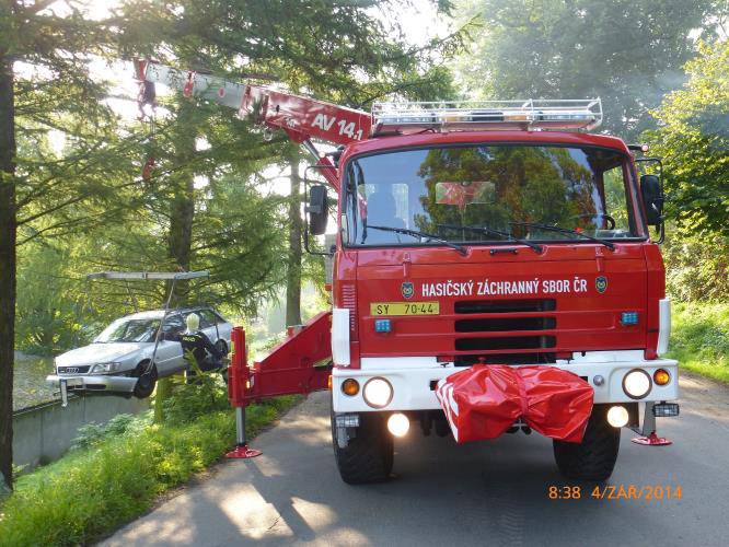 Při kolizi došlo ještě k vyvrácení šesti kamenných patníků. Při hrozivě vypadající nehodě naštěstí nedošlo ke zranění osob. Vozidlo hasiči zajistili navijákem a pomocí jeřábu auto vyprostili zpět na vozovku. Hasiči dále pomohli i s naložením automobilu na vozidlo odtahové služby a po úklidu vozovky se vrátili na základnu.
