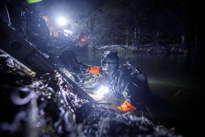 Mezitím potápěči ve vodě zajistili ponořený automobil tak, aby ho bylo možné následně vyprostit. Hasičům se pak podařilo vytáhnout vůz na břeh, kde ho zkontrolovali, jestli z něj neunikly do řeky provozní kapaliny. Únik nebyl zjištěn. Zásah jednotek požární ochrany byl ukončen kolem 22. hodiny a vracely se zpět na základny. Okolnosti dopravní nehody vyšetřuje Policie ČR.