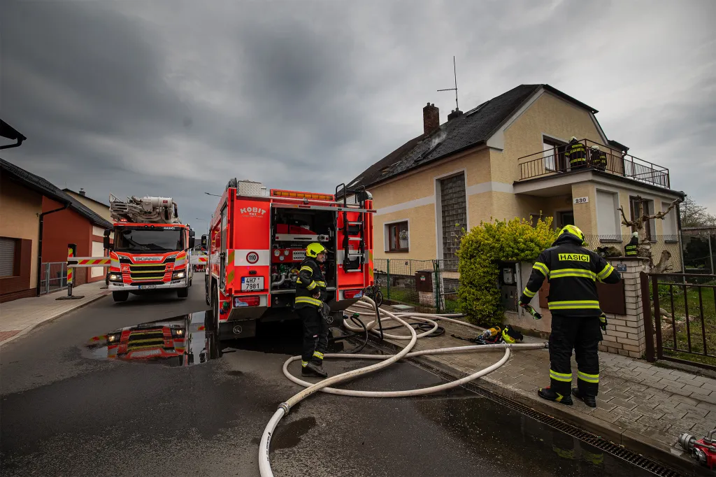 Polední drama v Nechanicích! Plameny ničily podkroví rodinného domu. Dva zranění jsou v péči zdravotníků