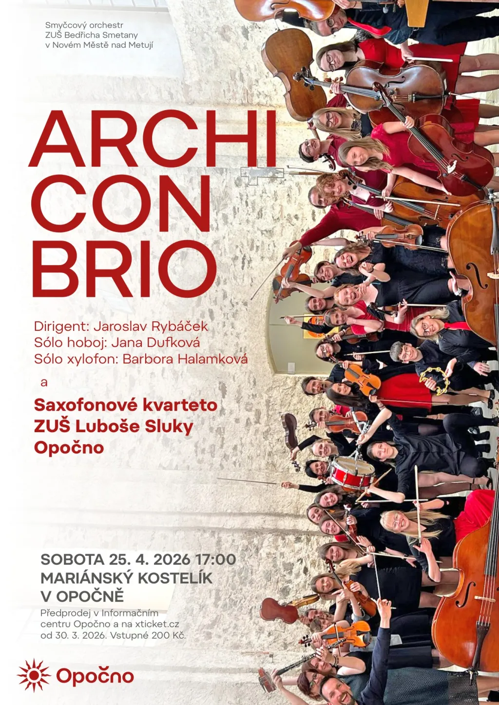 Koncert se uskuteční v sobotu 25. dubna od 17 hodin v Mariánském kostelíku. Vstupenky v předprodeji v Informačním centru Opočno a na xticket.cz za 200 Kč od 30. 3. 2026.