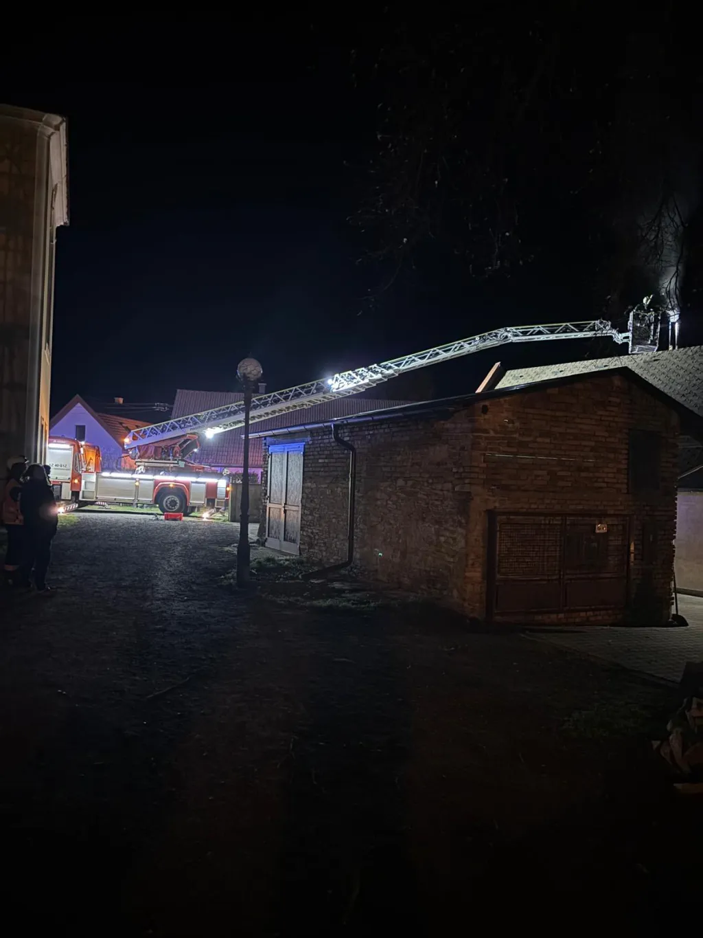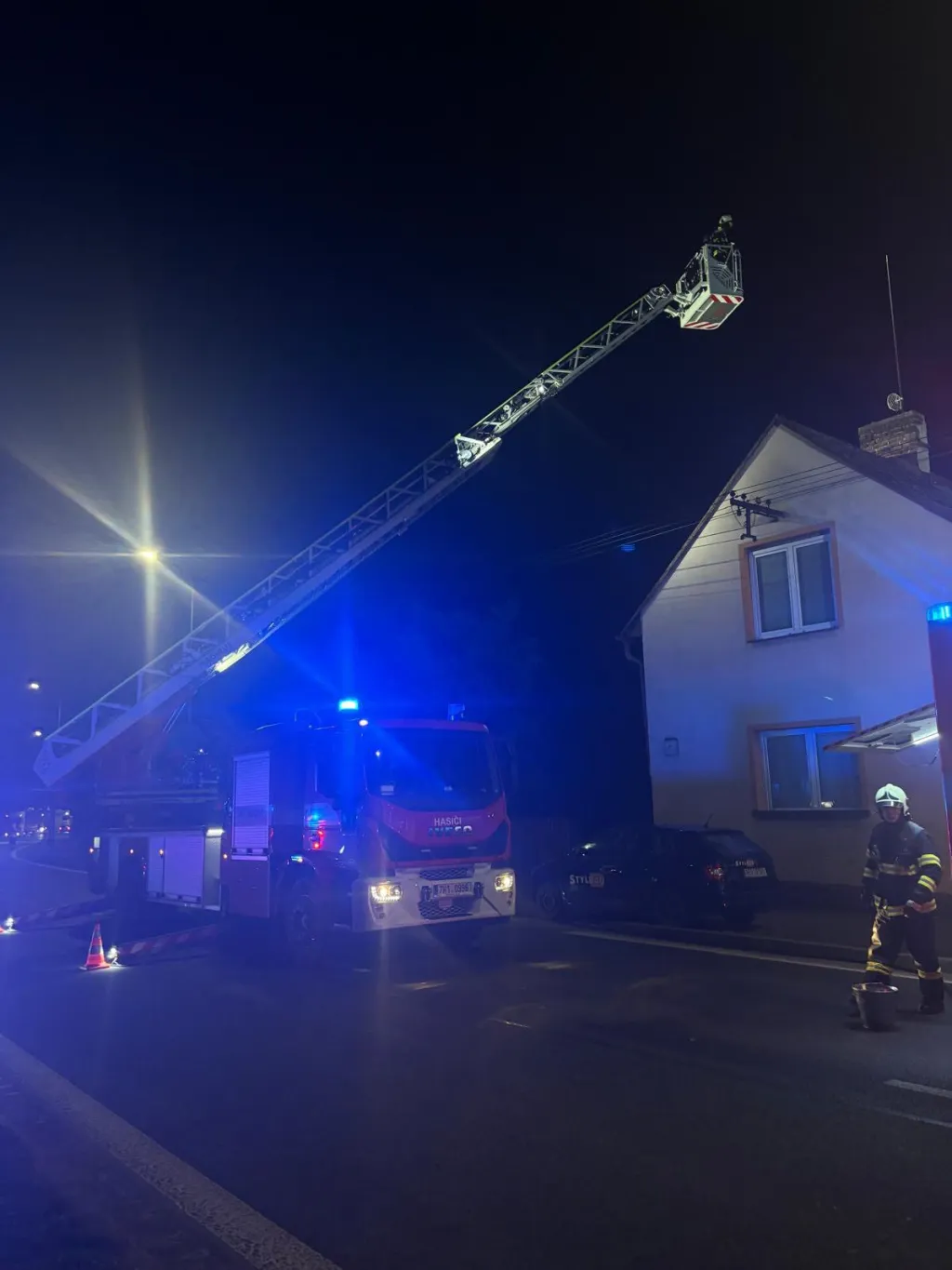 Po příjezdu na místo události hasiči zjistili, že v komínovém tělese rodinného domku došlo ke vznícení sazí. Vzhledem k pozdní hodině a faktu, že v domě bylo zhasnuto, se členové jednotky pokoušeli probudit majitele domu. Po úspěšném probuzení majitele hasiči vstoupili do budovy.