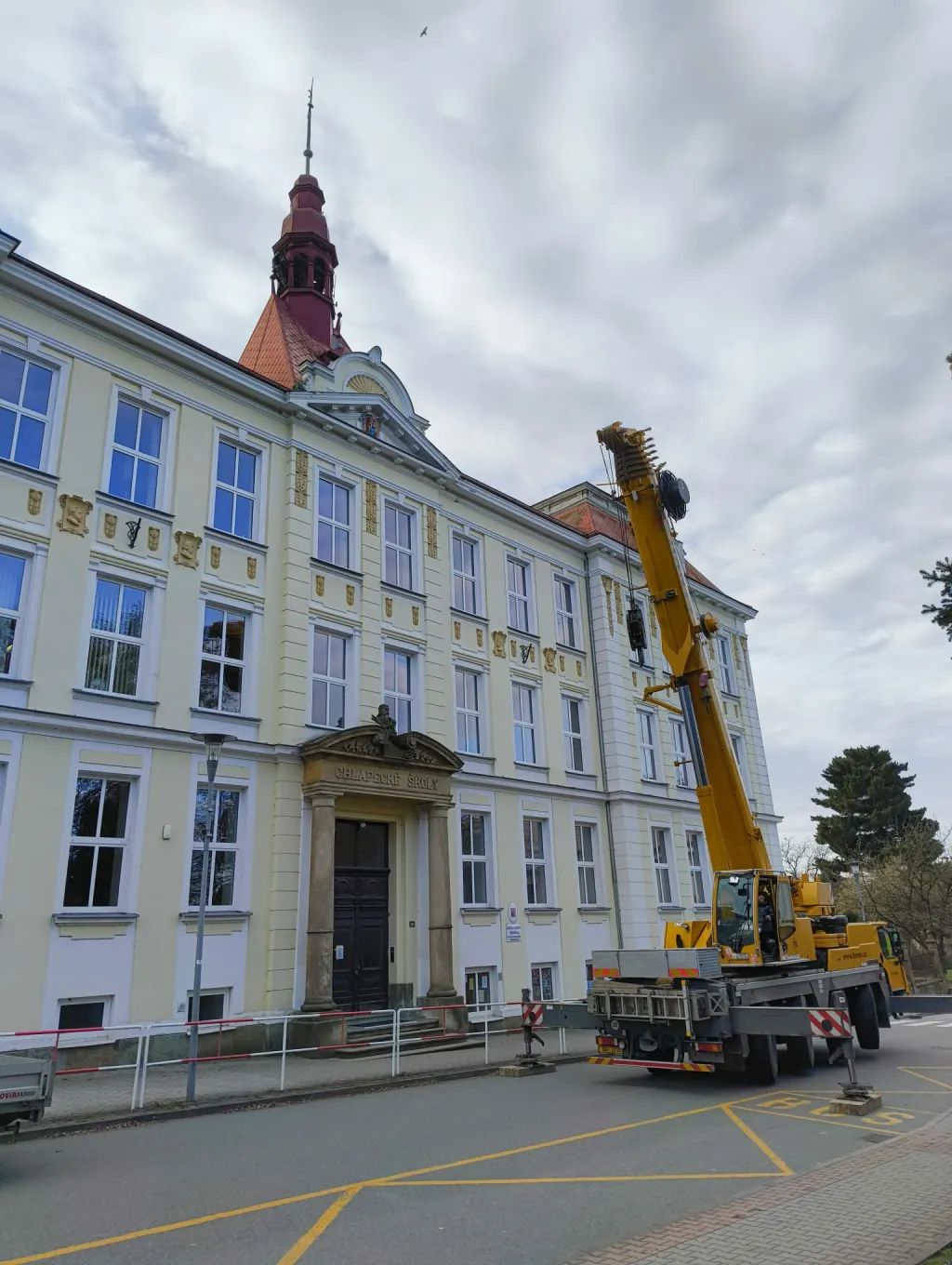 Budova Základní školy Masarykova v Rychnově nad Kněžnou prochází významnou změnou své siluety. Krátce před velikonočními svátky byla za pomoci těžké techniky snesena charakteristická střešní věžička. Odborný zásah zahájil plánovanou celkovou rekonstrukci tohoto unikátního architektonického prvku, který po 120 letech fungování školy vyžadoval nezbytnou opravu.