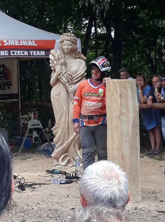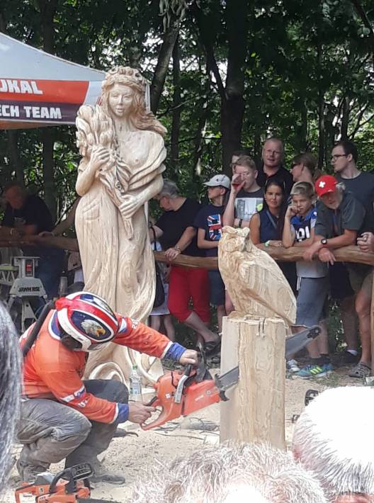 Socha za hodinu? Je libo sovu? Ano, je to možné. A profesionální řezbáři - statní hoši s motorovou pilou - to divákům během sobotního odpoledne předvedli. Musí se to zažít, těžko se to popisuje, ale pokud jste tam nebyli, tak alespoň několik fotografií. Podívejte se na ně.