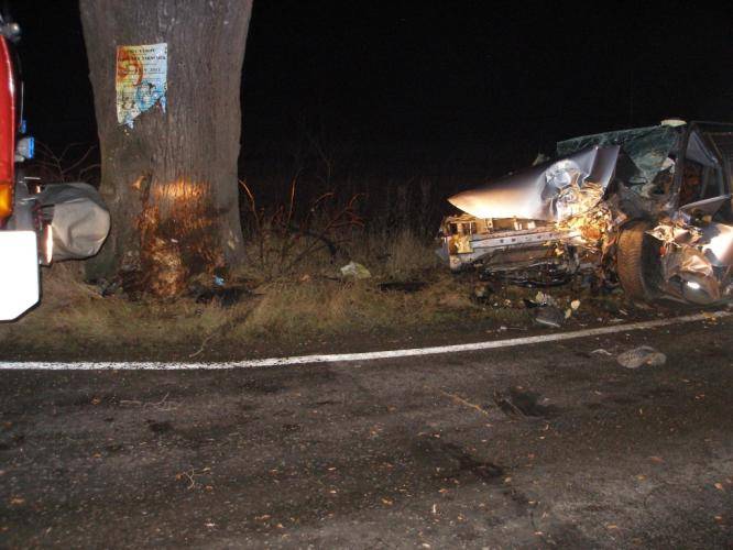 Hasiči vyprošťovali řidiče auta po nárazu do stromu