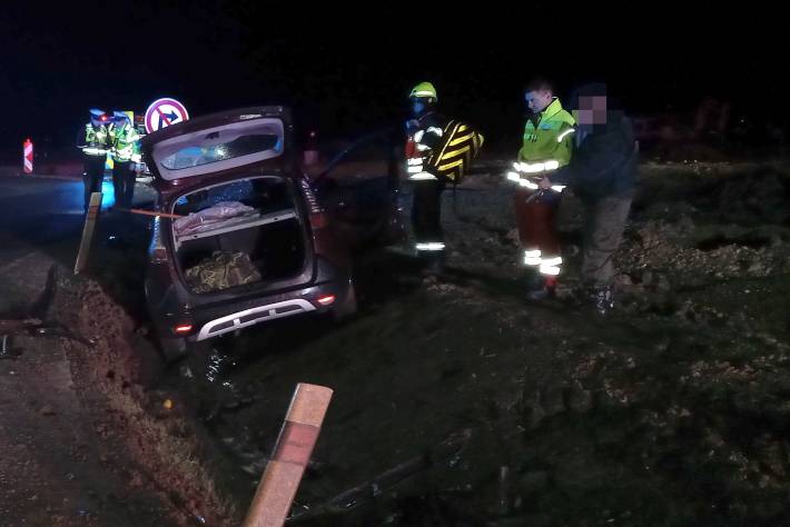 Podzimní nástrahy udeřily: U Lípy na I/35 havarovalo auto, zasahovala záchranka